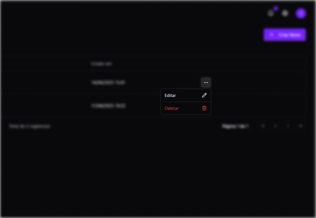 Presente na maioria das telas do sistema. Ao acessar os detalhes de um item, o usuário encontra todas as informações organizadas e pode realizar alterações de maneira mais completa e contextualizada.1