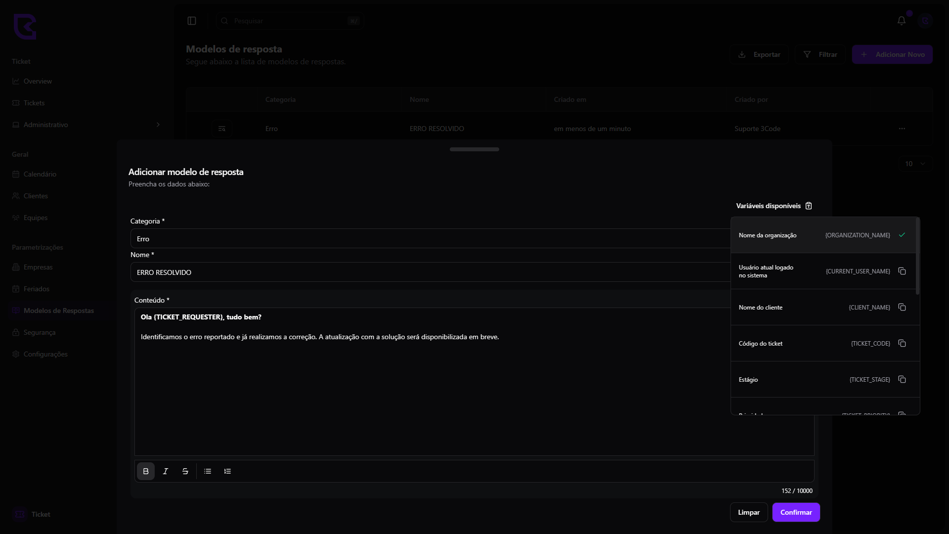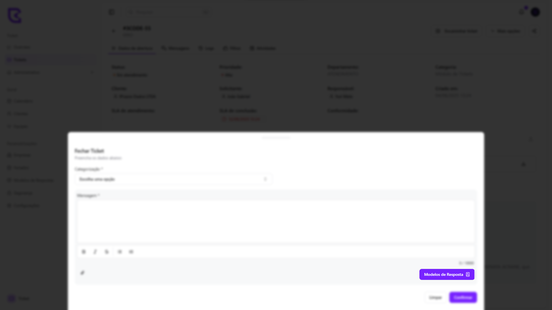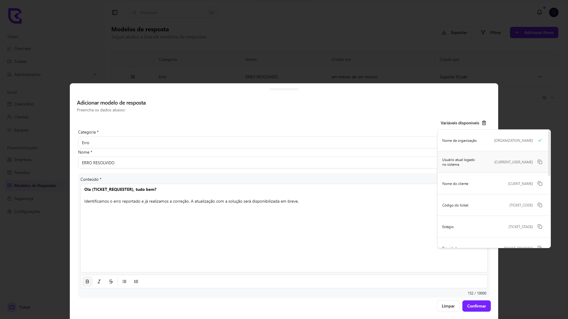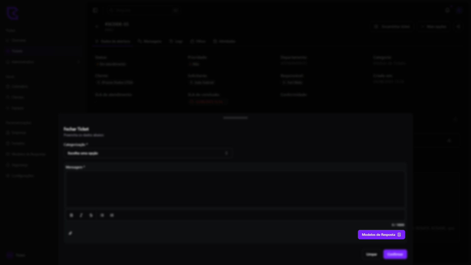 Esse recurso funciona como um atalho de comunicação inteligente, unindo velocidade, padronização e personalização tanto durante o atendimento quanto no encerramento do ticket.