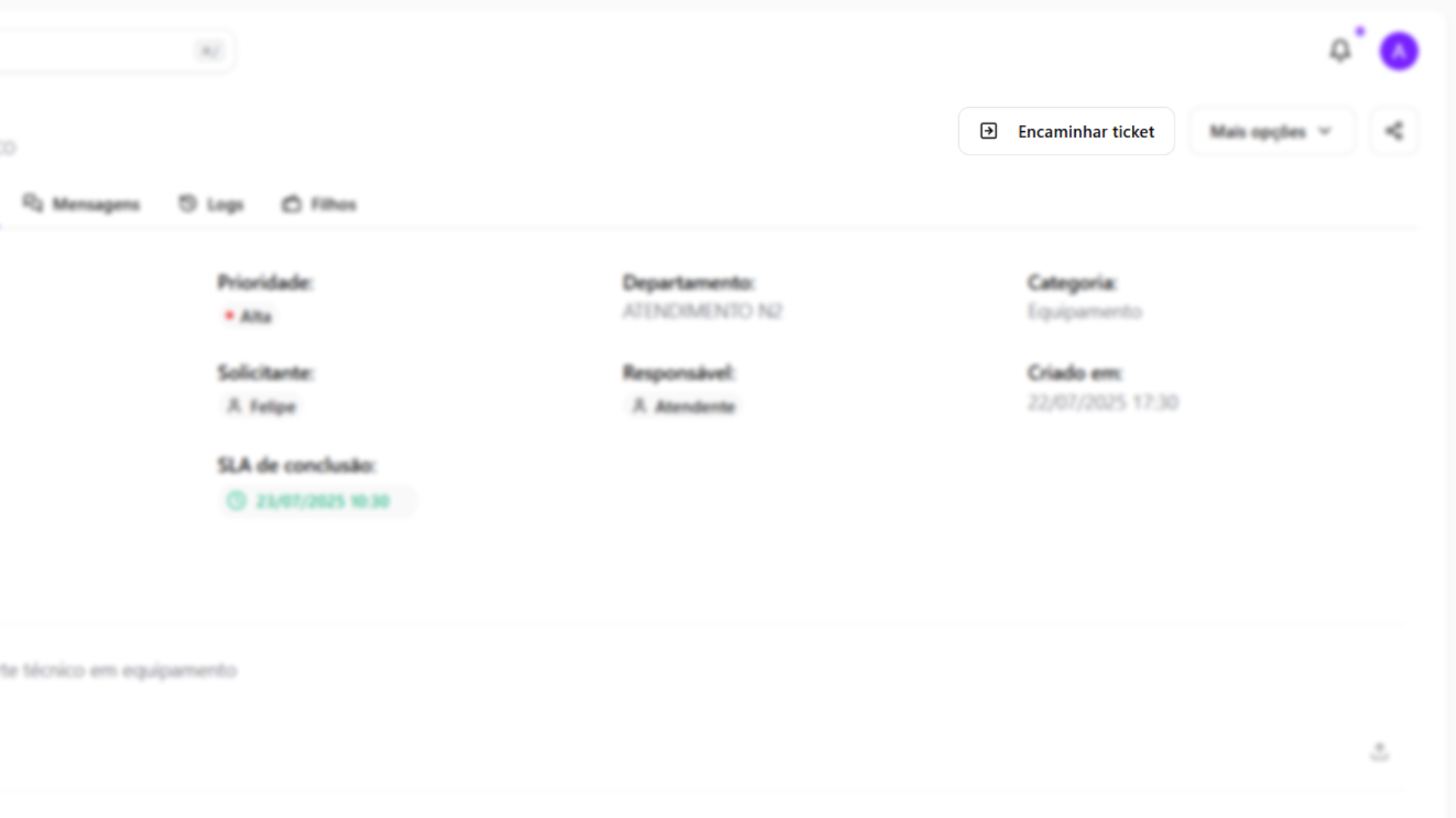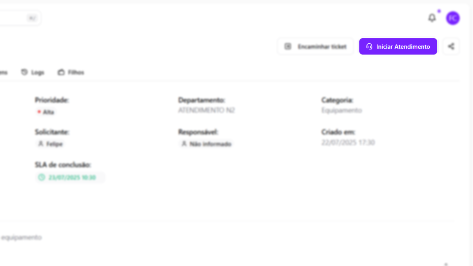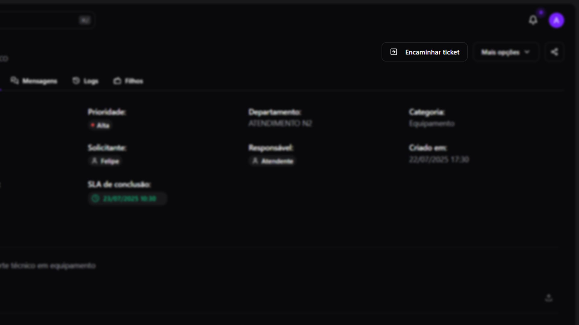 - SLA de conclusão: corresponde ao prazo definido para o ticket pai, ou seja, o chamado principal.