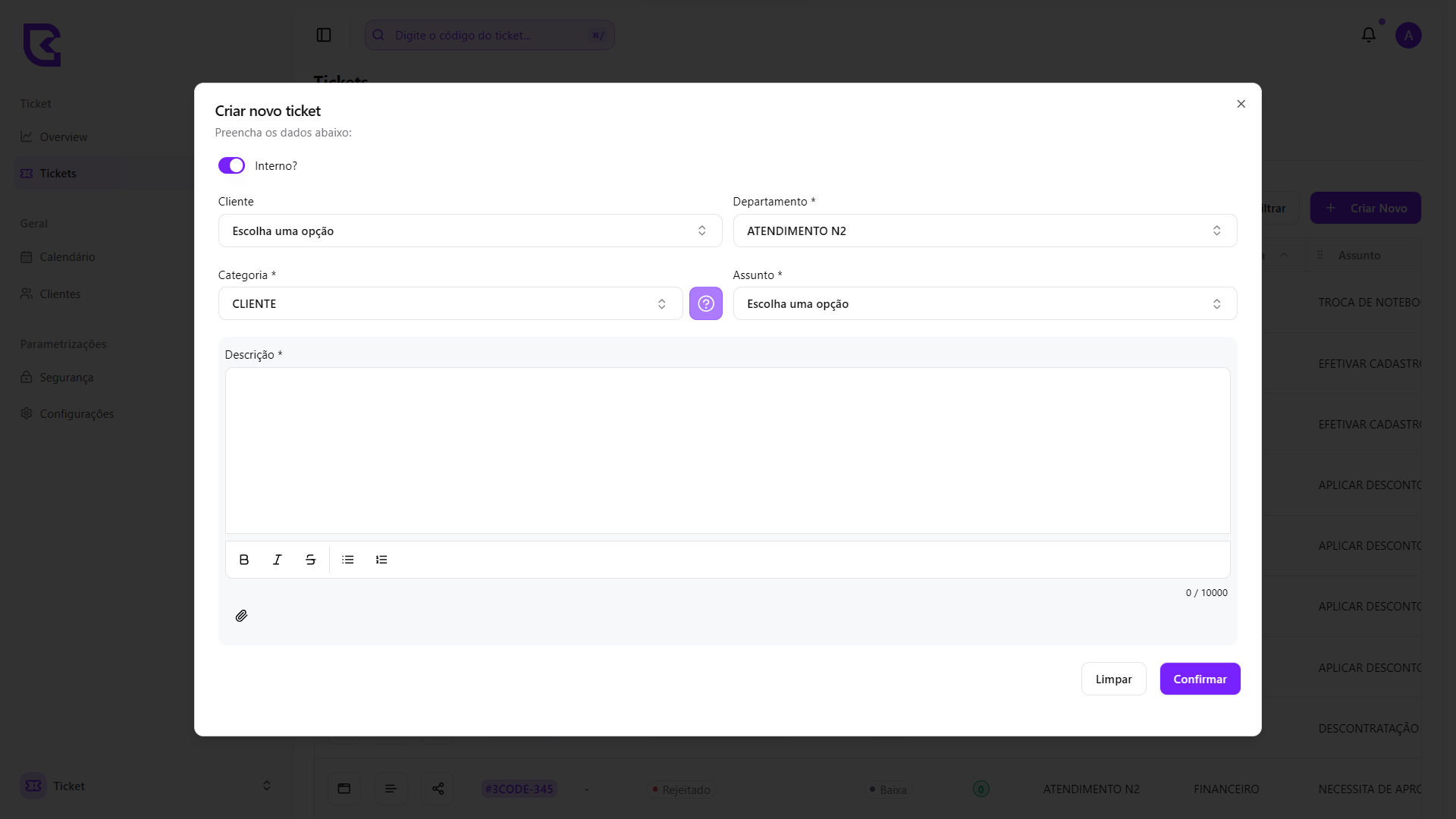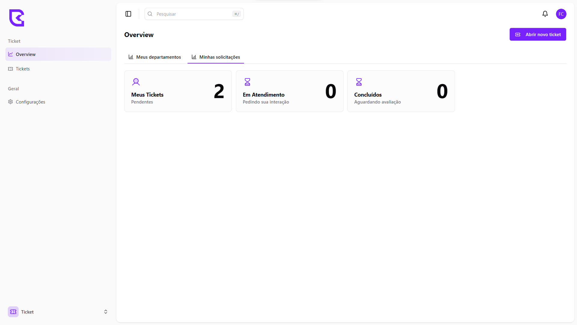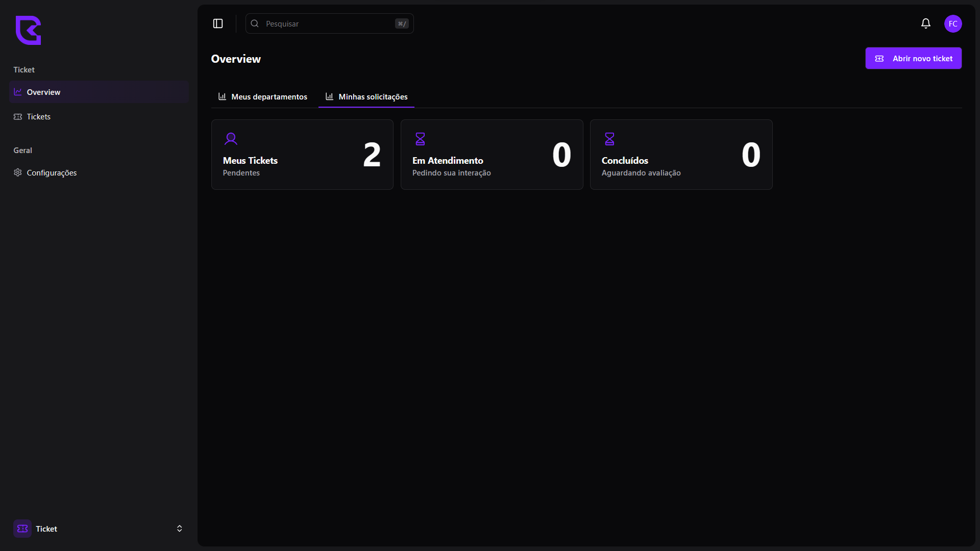 No sistema, usuários internos são os atendentes responsáveis por visualizar, responder e gerenciar os tickets enviados pelos clientes.Overview do atendente