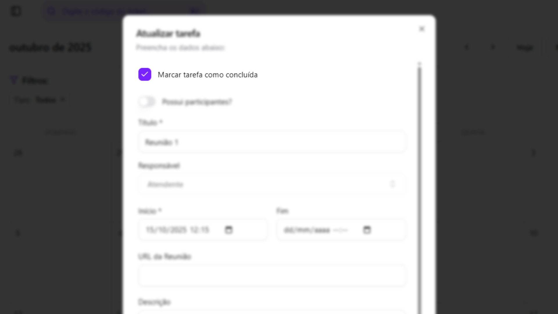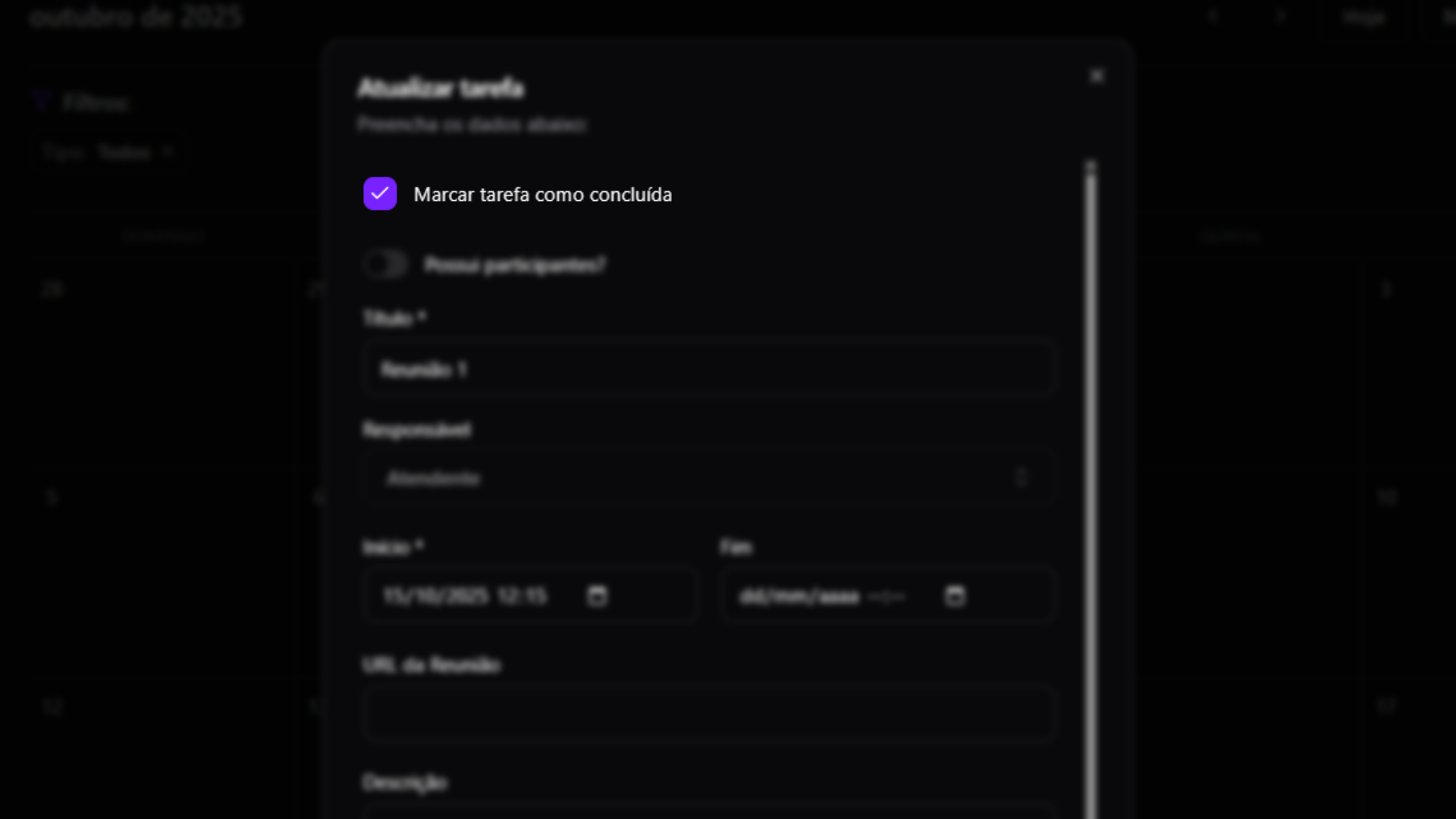 Na tela de atividades, o usuário pode criar e gerenciar tarefas detalhadas atribuindo: