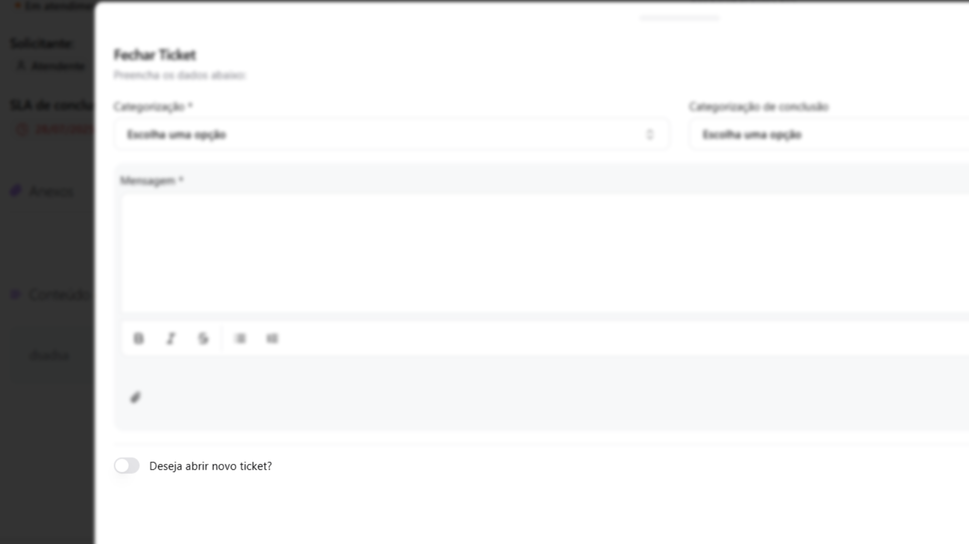 Após o fechamento do ticket, o SLA de conclusão será pausado e só voltará a contar caso o cliente reabra o chamado.Se quiser saber mais sobre SLA, clique aqui