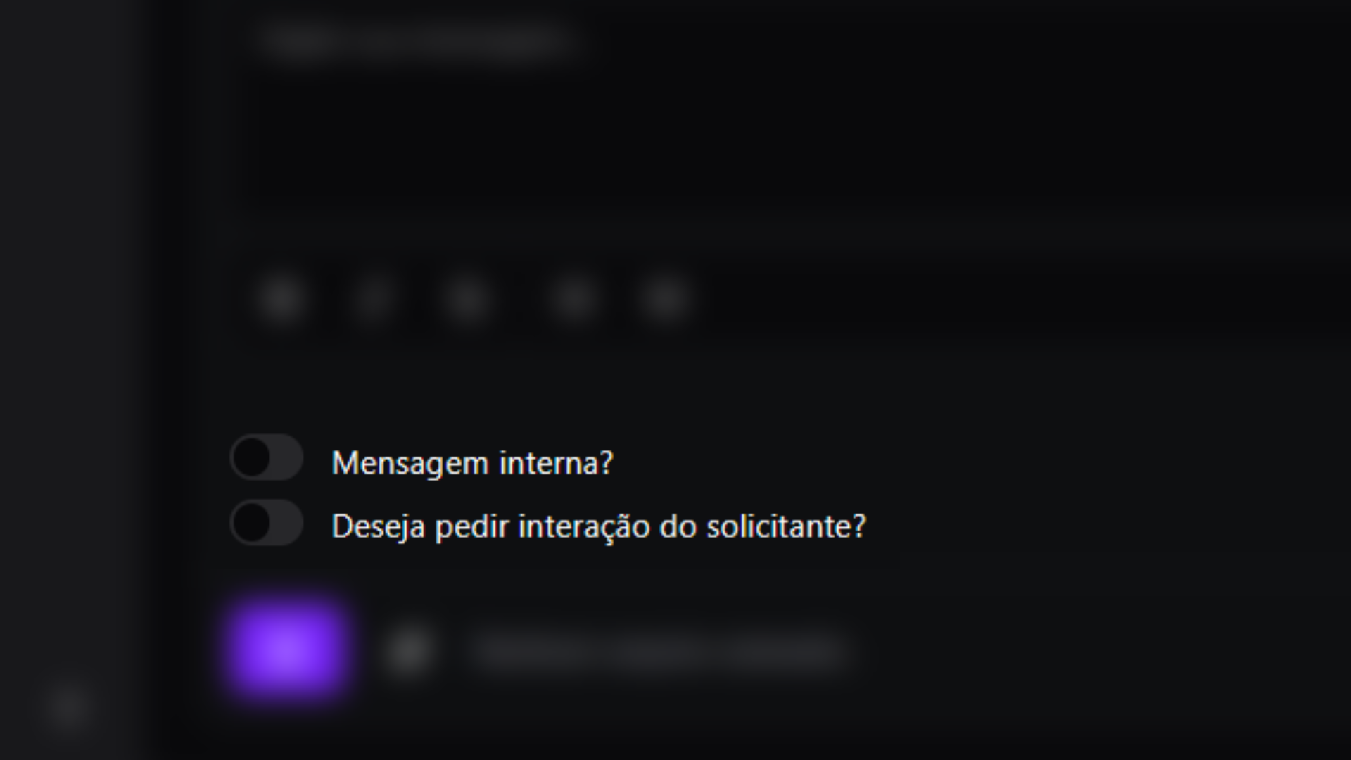 Você pode enviar uma mensagem interna ou uma mensagem direcionada ao solicitante. Caso solicite a interação dele, o SLA será pausado até que haja uma resposta.
