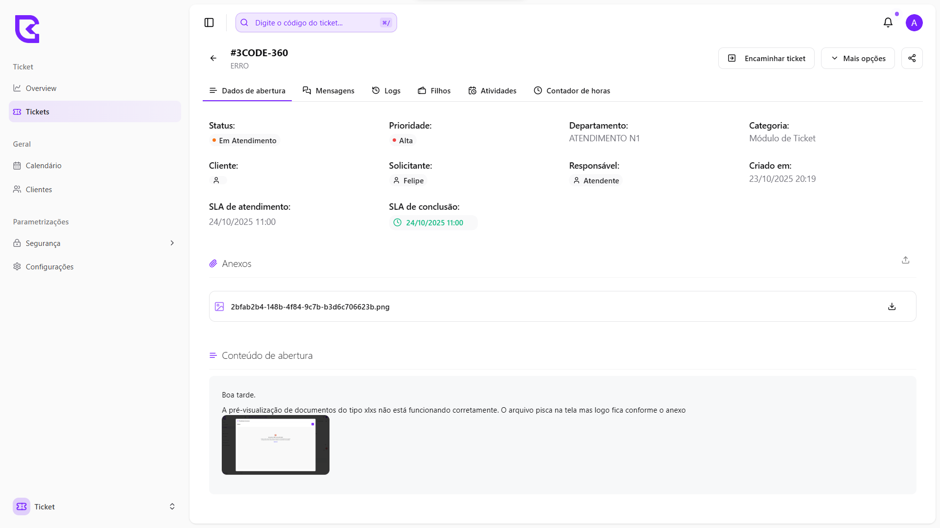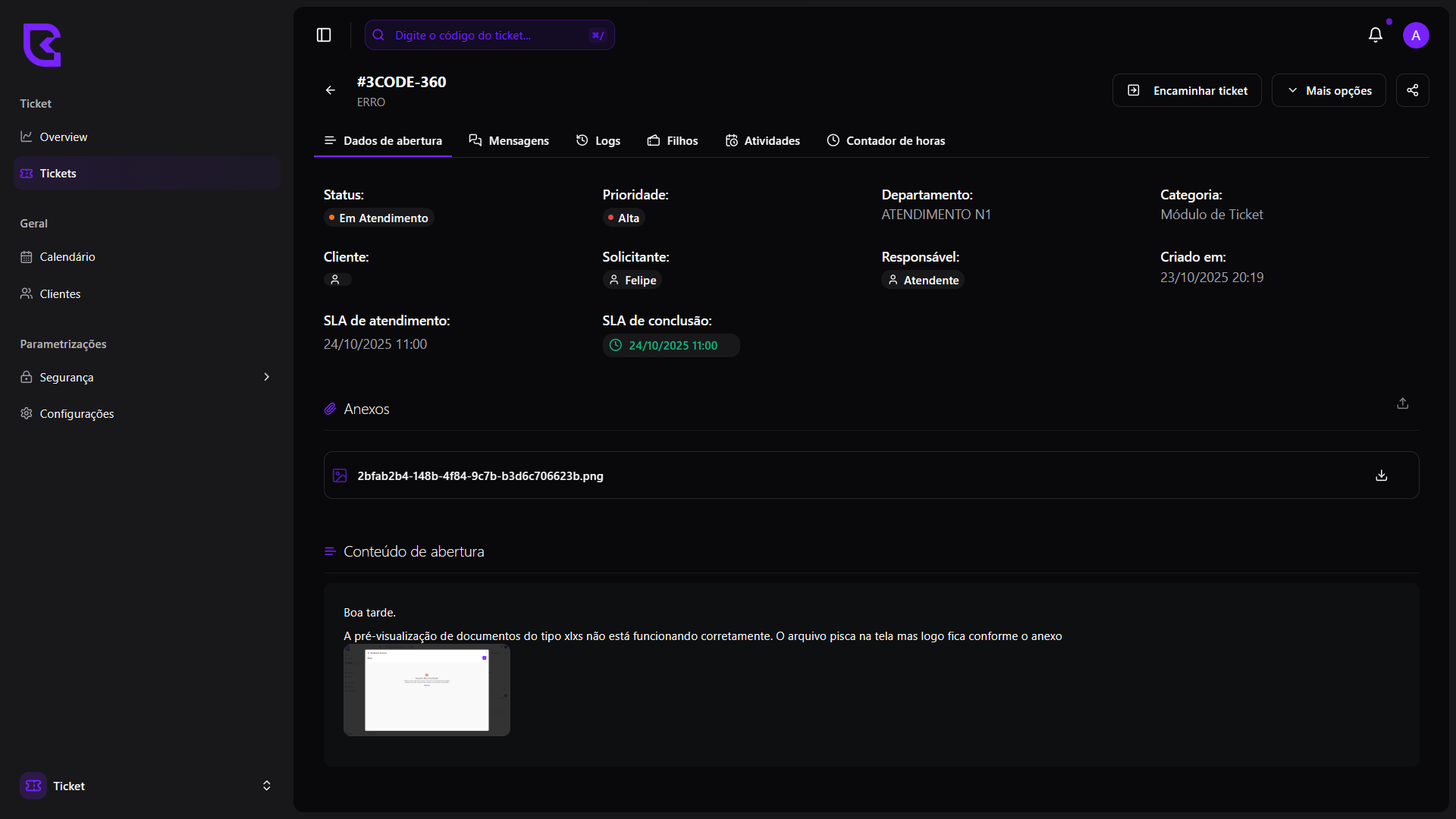 - SLA de conclusão (Original): representa o SLA do ticket filho, criado a partir do ticket pai.
