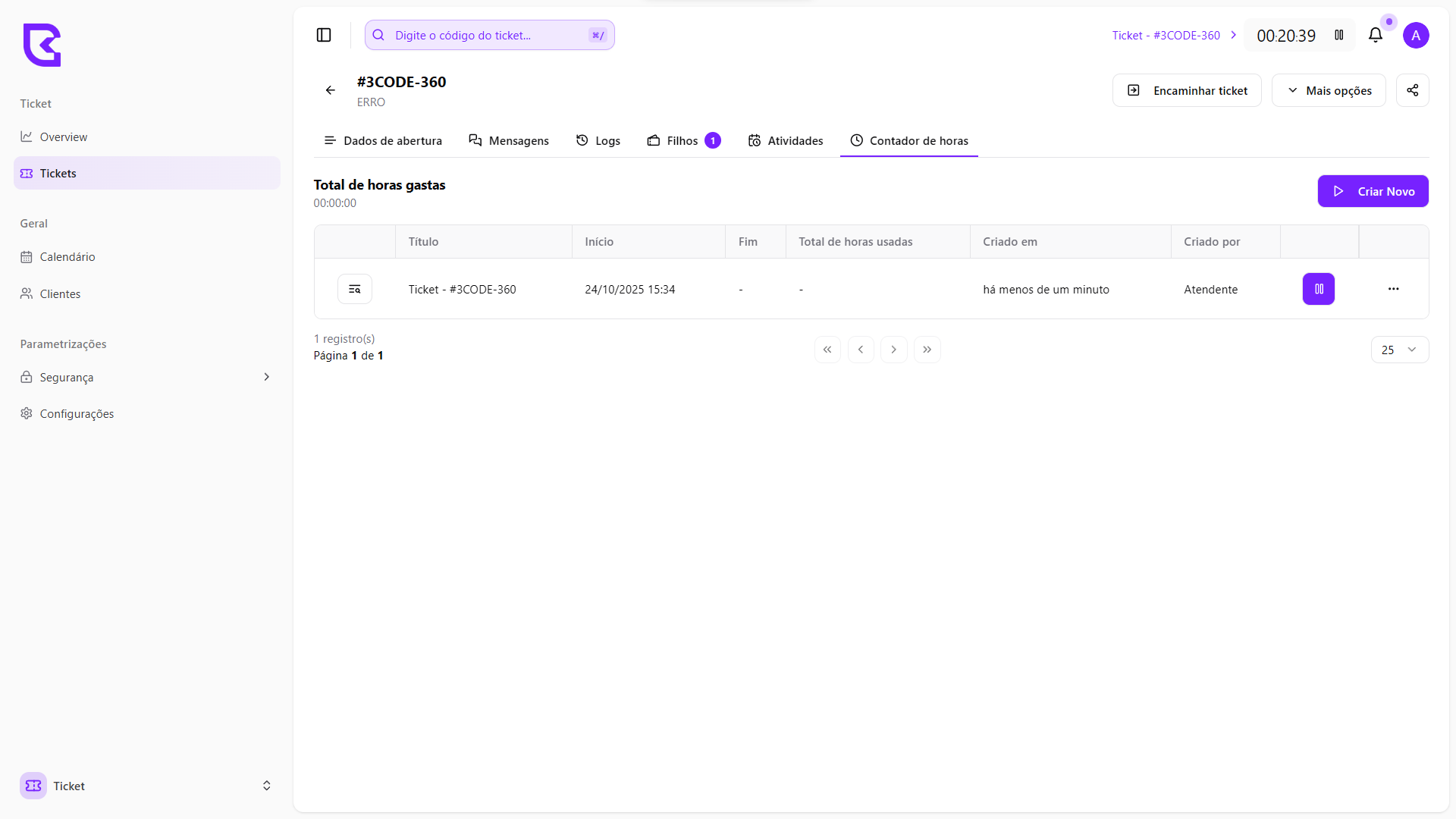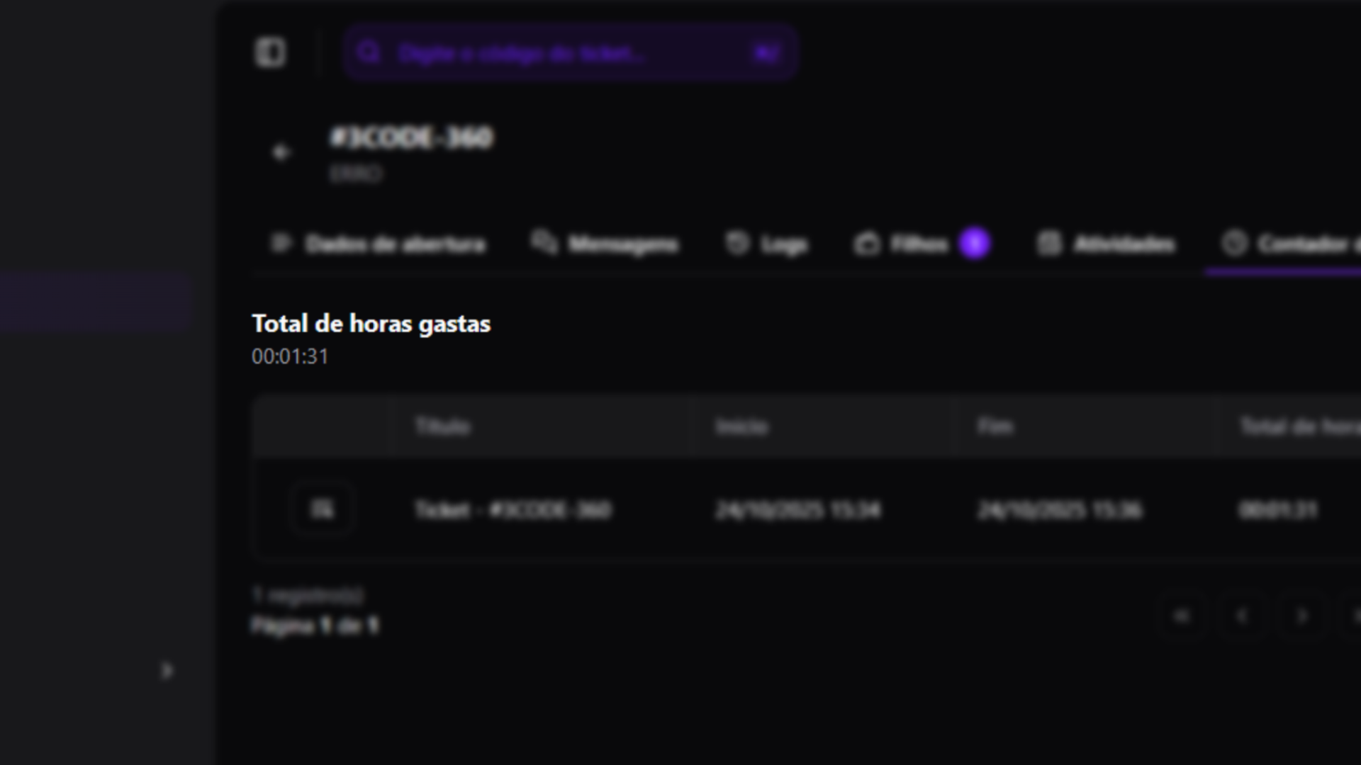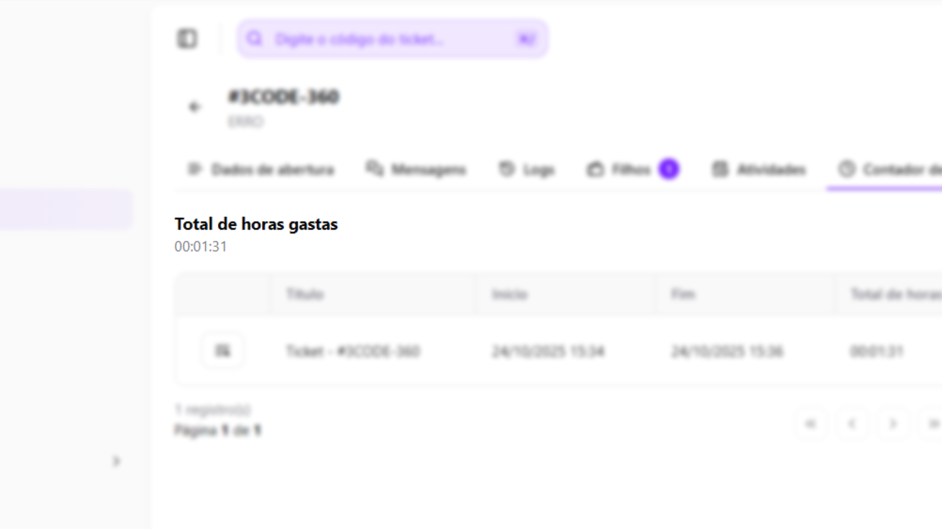 O contador de horas permite que o usuário interno com a permissão adequada registre e controle o tempo dedicado ao atendimento de um ticket. Esta funcionalidade é essencial para mensurar o esforço aplicado em cada solicitação e manter um controle preciso do tempo de atendimento.Registro de Horas